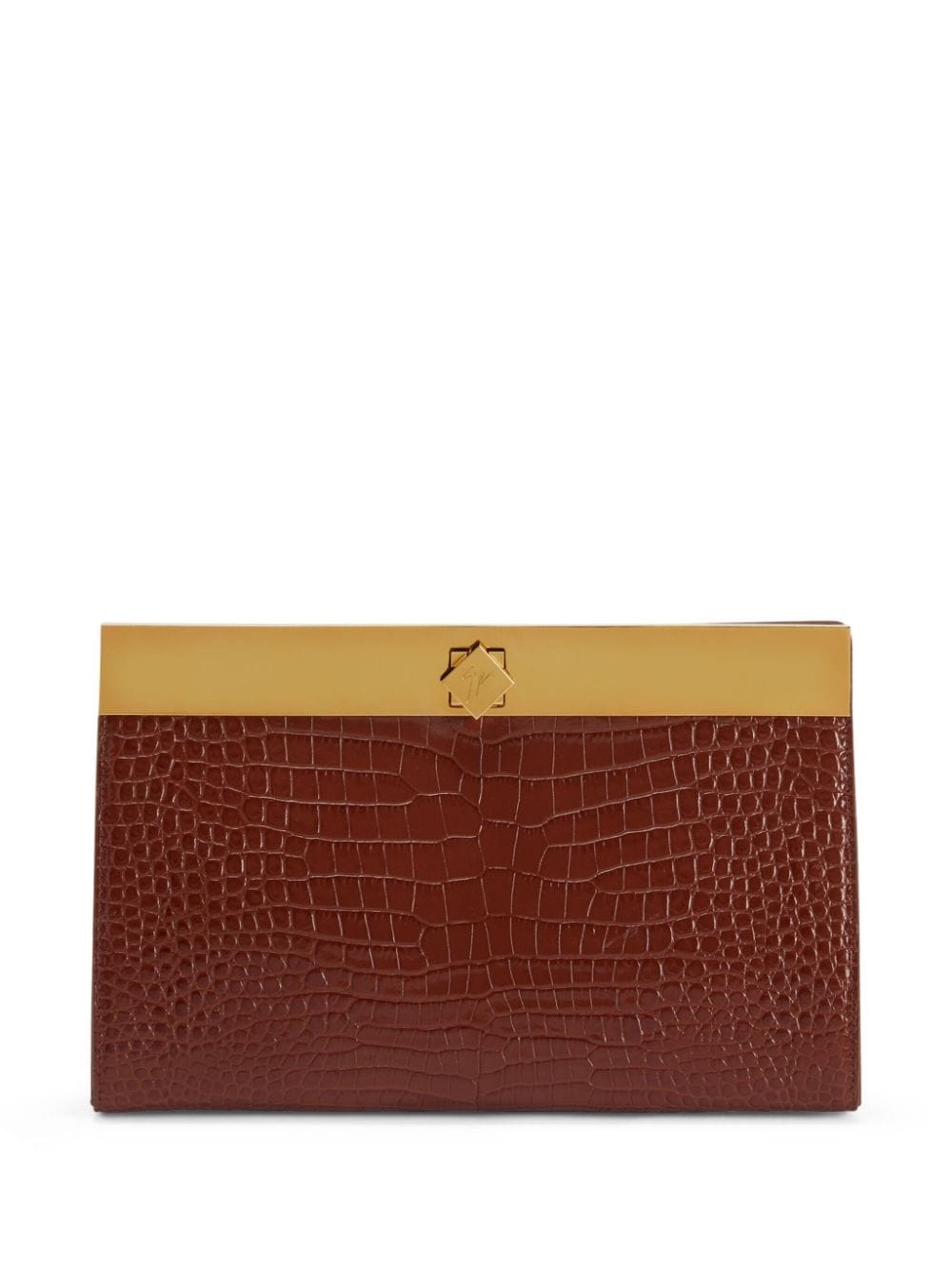 Tanaya clutch bag Highlights - Walnut brown - Leather - Embossed crocodile effect - Gold-tone hardware - Turn-clasp fastening - Detachable chain-link shoulder strap - Main compartment - Internal slip pocket - Internal logo stamp Made in Italy Composition Outer: Leather 100%