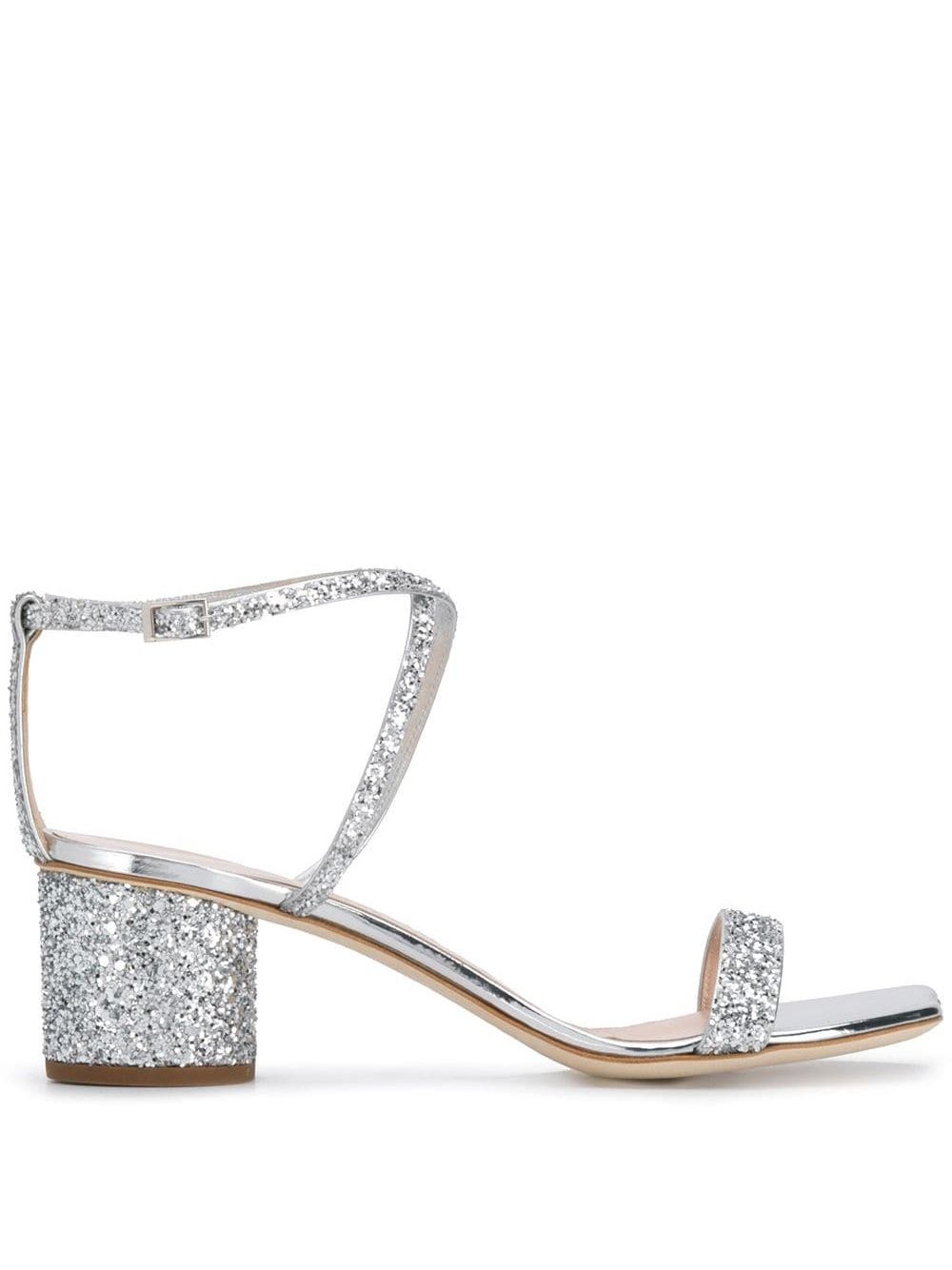 Tara Glitter sandals Italian craft lies at the heart of everything that Giuseppe Zanotti does. Presented in a metallic silver hue, these glitter-embellished Tara sandals sit atop a mid-high block heel. Highlights - Guiseppe zanotti design creates show stopping leather goods for connoisseurs of faultless construction with a slick edginess. these silver-tone tara glitter sandals are crafted from leather and feature a square toe, a branded insole, a mid high block heel, an ankle strap with a side buckle fastening and an all over glitter finish. Made in Italy Composition Lining: Calf Leather 100% Sole: Calf Leather 100% Outer: Bovine Leather (top grain) 100%, Sequin 100% SIZE & FIT Measurement HEIGHT 2.16 in(5.5 cm) HEEL 2.36 in(6 cm) CIRCUMFERENCE 9.44 in(24 cm)