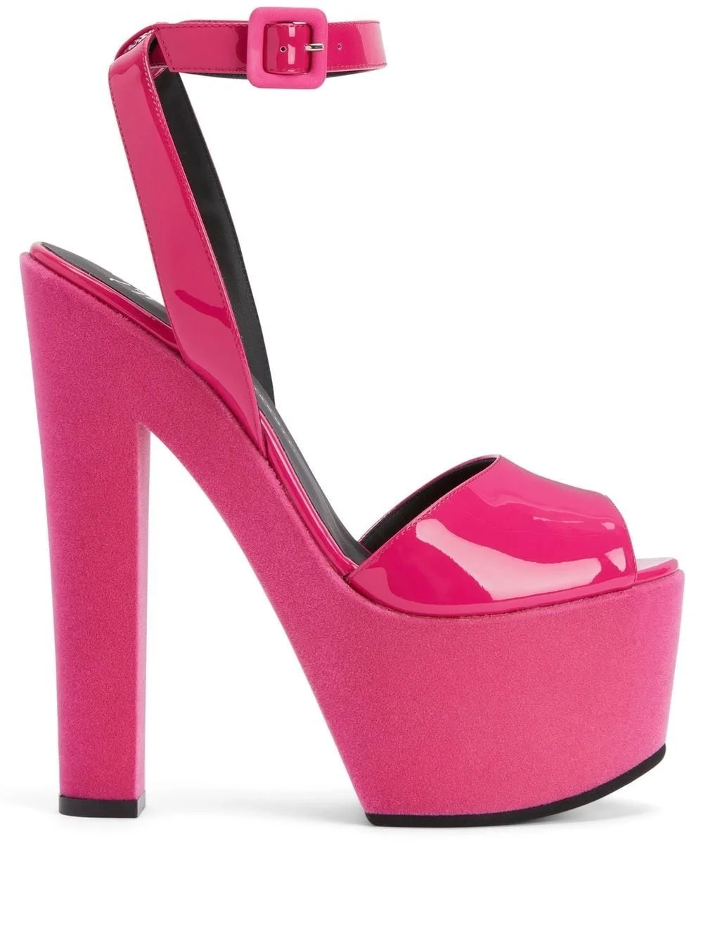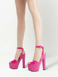 Tarifa 170mm platform sandals Highlights - Pink - Patent leather - Peep toe - Branded insole - Buckle-fastening ankle strap - Platform sole - 170mm heel Made in Italy Composition Outer: Leather 100% Lining: Leather 100% Sole: Leather 100%