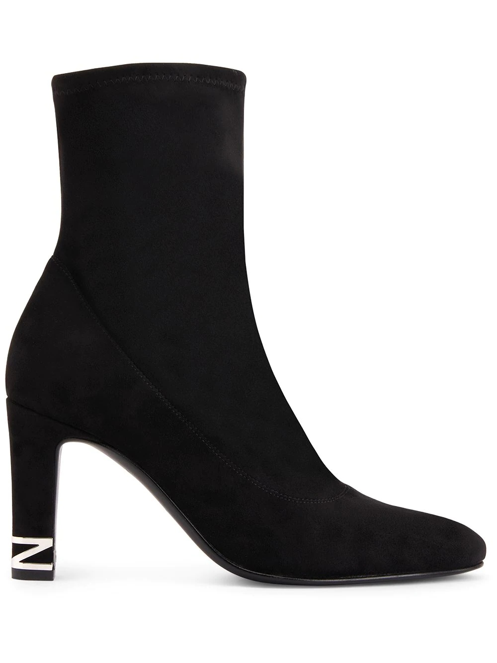 90mm Teodora ankle boots Giuseppe Zanotti marries Italian allure with modern femininity to create a 'sensual meets rock and roll' aesthetic. These Teodora suede ankle boots are designed with a sock-style ankle and the signature 'GZ' logo lettering to the block heel. Highlights - Black - Suede - Silver-tone gz logo lettering - Sock-style ankle - Side zip fastening - Almond toe - High block heel - Leather sole Made in Italy Composition Suede 100%