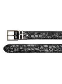 Teodore crocodile-embossed belt Highlights - Black - Silver-tone buckle - Double prong detail - Embossed design - Adjustable length - Polished finish Made in Italy Composition Leather 100%