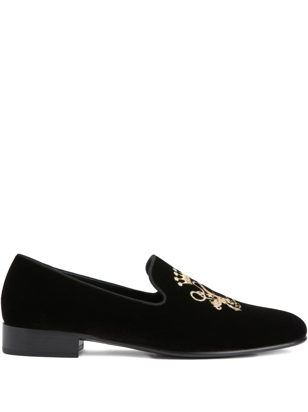 Terence embroidered loafers Highlights - Black - Velvet upper - Golden-thread embroidery - Grosgrain trim - Leather sole Made in Italy Composition Outer: Velvet 95%, Fabric 5% Lining: Goat Skin 100% Sole: Goat Skin 100%