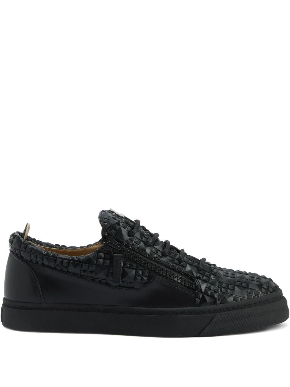 The Manhattan zip-detail woven sneakers Highlights - Black - Woven leather upper - Zip fastening - Geometric pattern - Low-top style - Flat rubber sole Made in Italy Composition Outer: Fabric 100% Sole: Rubber 100% Lining: Fabric 100%