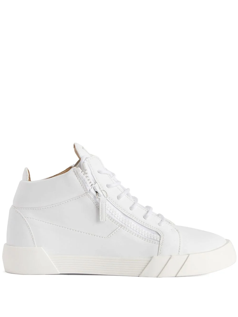 The Shark 5.0 sneakers white leather logo patch at the tongue side zip fastening round toe front lace-up fastening branded insole flat rubber sole Made in Italy Composition Sole: Rubber 100% Outer: Leather 100% Lining: Leather 100%