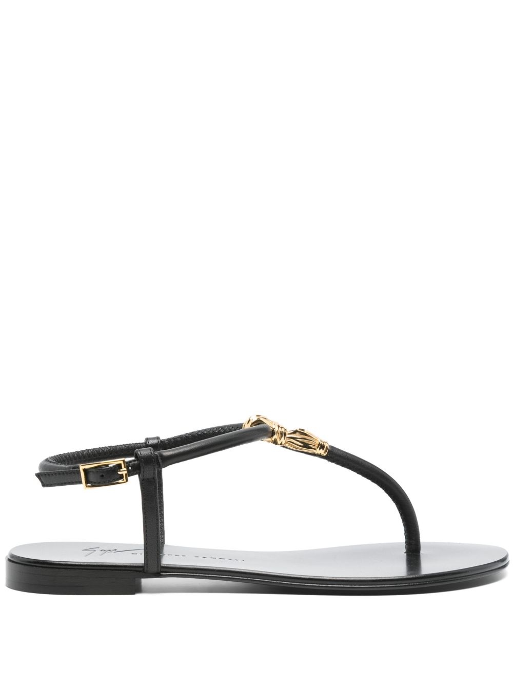 Tie flat leather sandals Highlights - Black - Buckle-fastening ankle strap - Thong strap - Round open toe - Low stacked heel Made in Italy Composition Sole: Calf Leather 100% Lining: Calf Leather 100% Outer: Calf Leather 100%