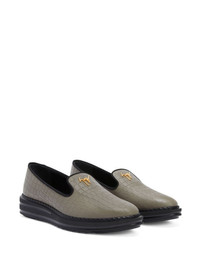 Tim logo-lettering loafers Highlights - Charcoal grey - Leather - Embossed crocodile effect - Gold-tone logo lettering - Almond toe - Slip-on style - Branded insole - Flat rubber sole Made in Italy Composition Leather 100%