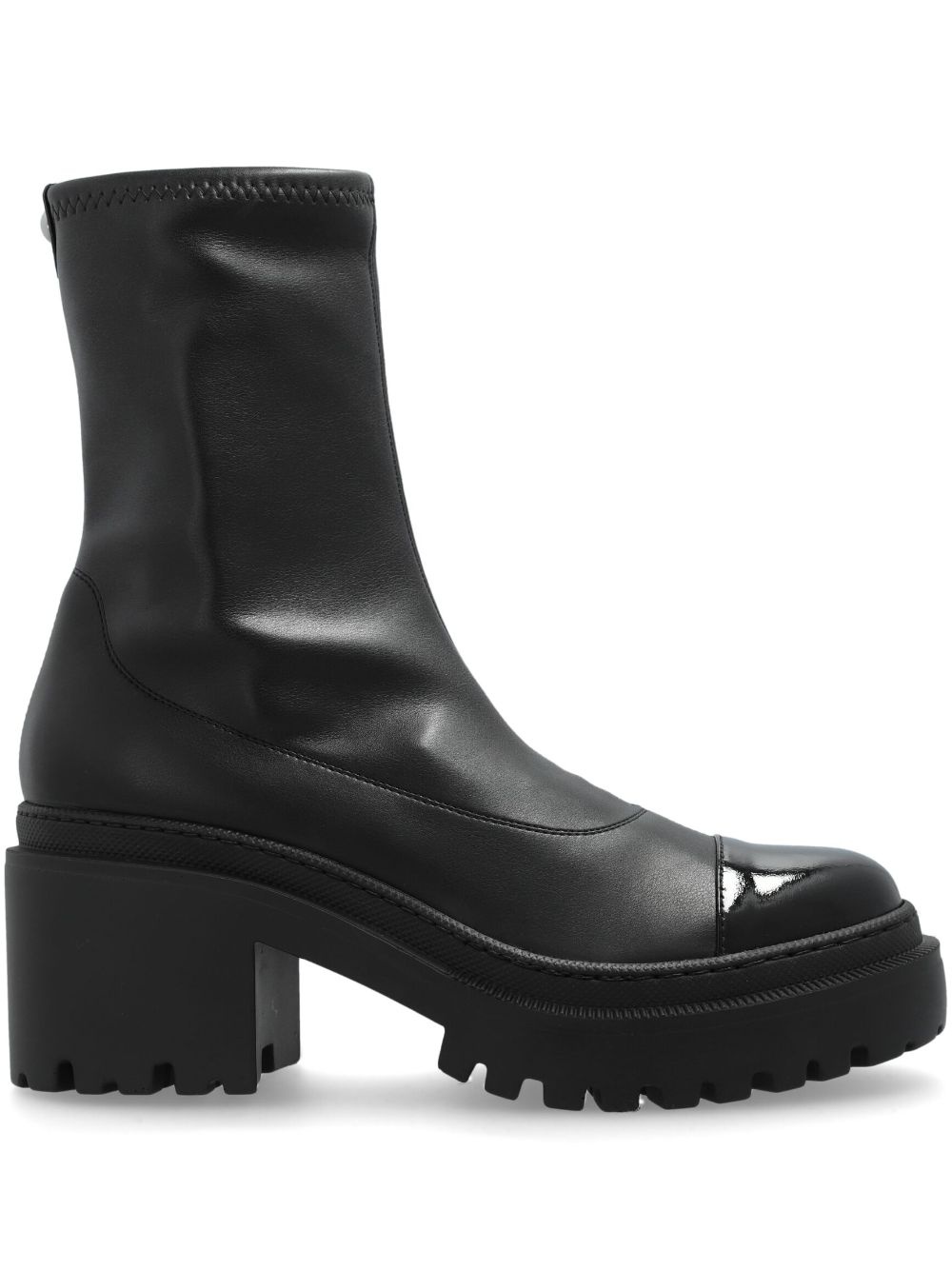 70mm Lionora chunky boots Highlights - Black - Calf leather - Smooth grain - Panelled design - Silver-tone stud detailing - Round toe - Ankle-length - Pull-on style - Pull-tab at the heel - Branded leather insole - Mid block heel - Chunky rubber sole Made in Italy Composition Lining: Calf Leather 100% Outer: Calf Leather 100%