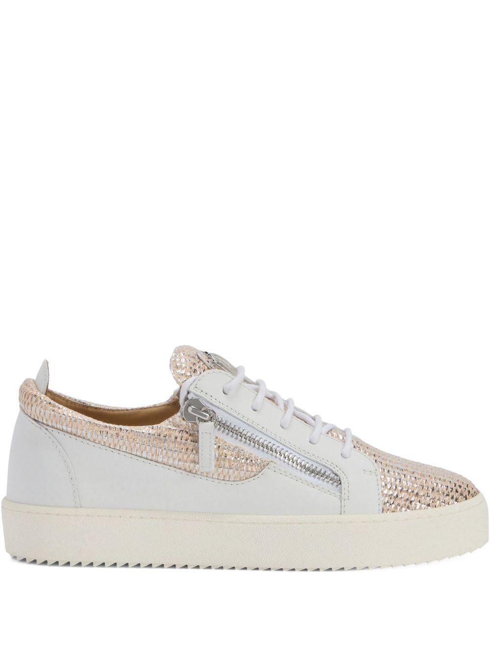 woven-panel side-zip sneakers Highlights - White - Leather - Woven panel - Lace-up fastening - Side zip detail - Flat sole Made in Italy Composition Outer: Leather 100% Sole: Rubber 100% Lining: Leather 100%