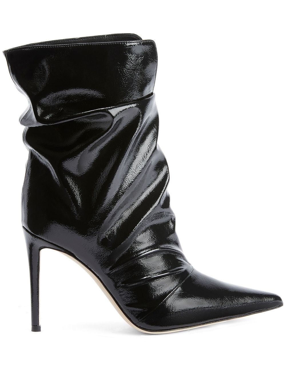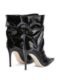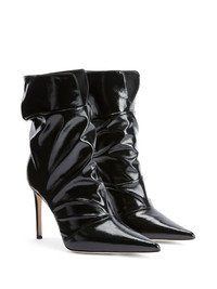 105mm Yunah slouchy boots Highlights - Black - Leather - Patent finish - Slouch body - Gathered detailing - Pointed toe - Slip-on style - 85mm high stiletto heel - Ankle-length Made in Italy Composition Outer: Fabric 100% Sole: Leather 100% Lining: Fabric 100%