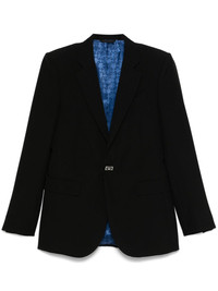 2G-clip wool blazer Highlights - Black - Concealed front press-stud fastening - Shoulder pads - Buttoned cuffs - English rear vents Made in Italy Composition Outer: Wool 100% Lining: Viscose 55%, Cupro 45% SIZE & FIT Model measurements Height 6 ft 2 in(1.88 m) Bust/Chest 36.61 in(93 cm) Hips 36.61 in(93 cm) Waist 29.92 in(76 cm) FittingInformation Designed for a slim fit, offering a comfortable fit that sits just away from the body The internal shoulder pads offer a structured shape Made from a midweight non-stretch fabric Measurement CHEST 40 in(101.6 cm) SLEEVE LENGTH 26.49 in(67.3 cm) LENGTH 30 in(76.2 cm) WAIST 37 in(94 cm) Shoulder Width 15.98 in(40.6 cm)