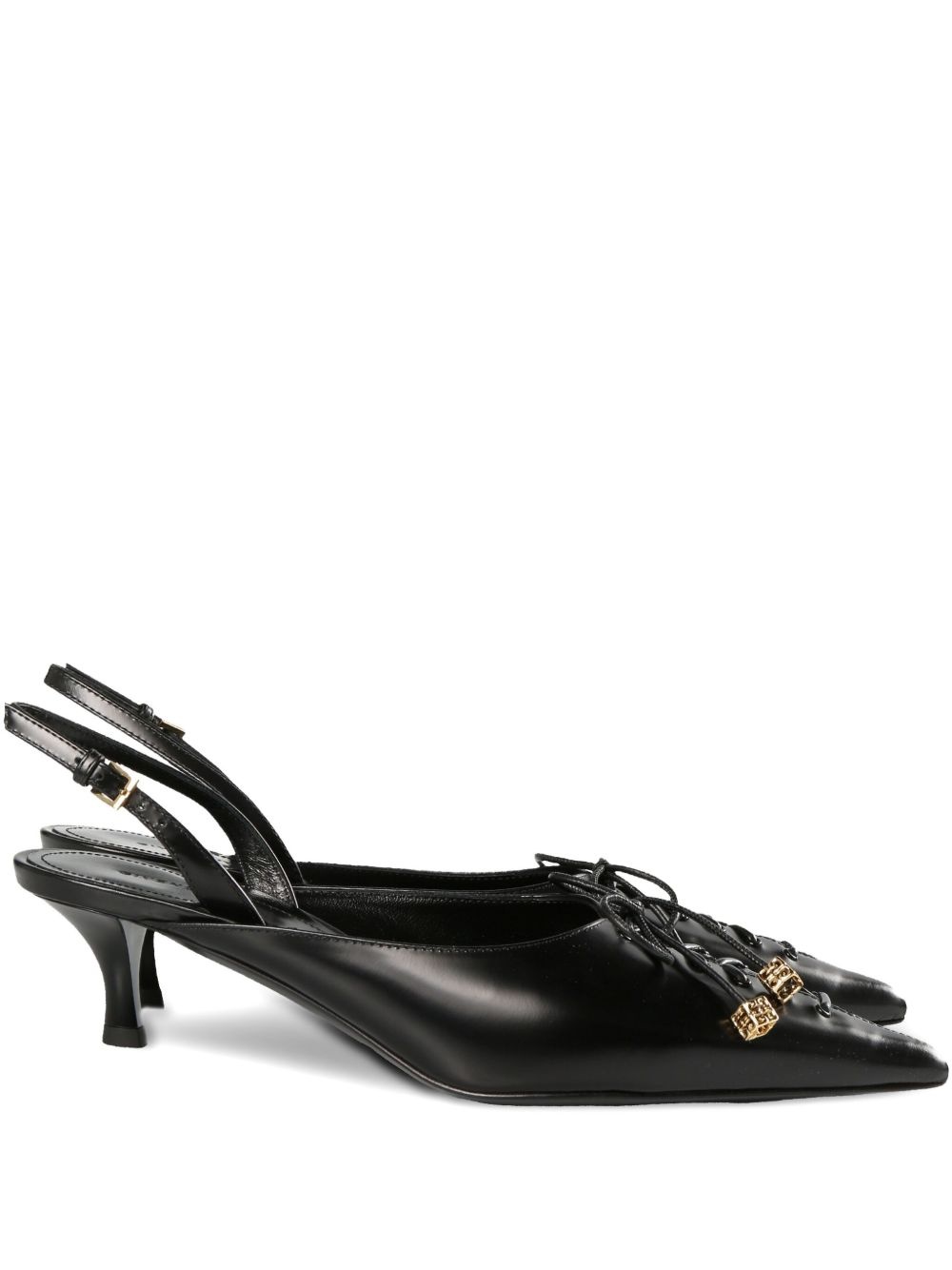 45mm lace-up pumps Highlights - Black - Buckle-fastening slingback strap - Logo charm - Pointed toe - Kitten heel Made in Italy Composition Sole: Calf Leather 100% Outer: CALFSKIN 100% Lining: Goat Skin 100% SIZE & FIT Measurement HEEL 1.8 in(4.5 cm)