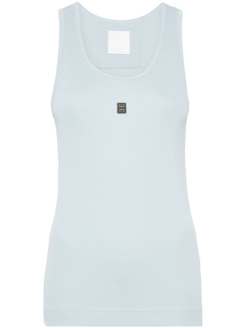 4G tank top Highlights - Light blue - Cotton blend - Fine ribbed - Signature 4g motif - Silver-tone logo plaque - Round neck - Sleeveless - Straight hem Imported Composition Cotton 98%, Elastane 2% SIZE & FIT Model measurements Height 5 ft 9 in(1.74 m) Bust/Chest 34.64 in(88 cm) Hips 36.61 in(93 cm) Waist 26.37 in(67 cm) FittingInformation Designed for a slim fit that sits just away from the body offering a close yet comfortable fit Made from a midweight stretch fabric, this piece offers elasticity and flexibility when worn Measurement BUST 27.99 in(71.1 cm) LENGTH 25.98 in(66 cm) WAIST 27.99 in(71.1 cm)