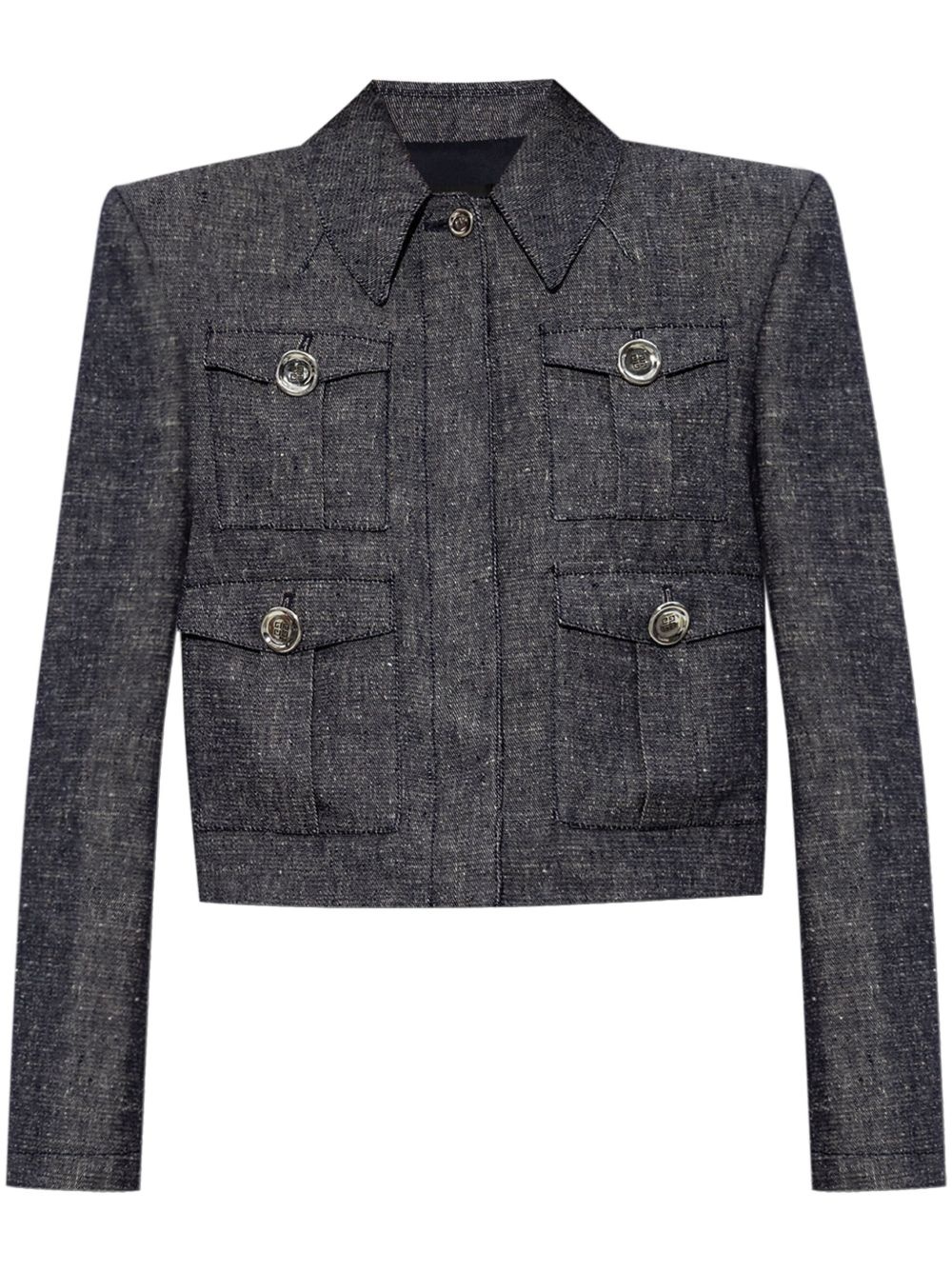 4G cropped jacket Highlights - Midnight blue - Front button fastening - Four front flap pockets - Shoulder pads Made in Italy Composition Silk 100%