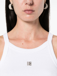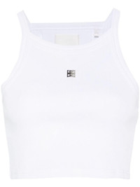 4G cropped tank top Highlights - White - Cotton blend - Stretch-design - Ribbed detailing - Square neck - Sleeveless - 4g silver-tone plaque at the chest - Cropped - Straight hem Imported Composition Cotton 98%, Spandex/Elastane 2% SIZE & FIT Measurement LENGTH 15.98 in(40.6 cm) BUST 27.99 in(71.1 cm) Washing instructions Hand Wash