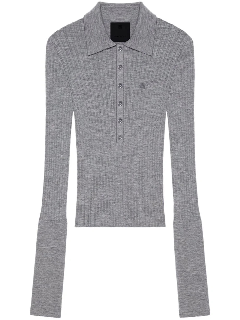 4G-detail wool polo top Highlights - Timberwolf grey - Short front button fastening - Long sleeves - Polo collar Imported Composition Wool 100% Washing instructions Read Manufacturer Guidelines