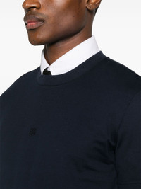4G-embroidered cotton T-shirt Givenchy's cotton T-shirt is embroidered with the signature 4G motif on the front in tonal threads. Highlights - Navy blue - Cotton - Soft jersey - Crew neck with ribbed trim - Tonal embroidered logo to the front - Signature 4g motif - Short sleeves - Short side slits - Tonal embroidered logo to the rear - Straight hem - Pull-on style Made in Italy Composition Cotton 100% SIZE & FIT Model measurements Height 6 ft 2 in(1.89 m) Bust/Chest 39.76 in(101 cm) Hips 37.4 in(95 cm) Waist 29.92 in(76 cm) Measurement CHEST 37 in(94 cm) LENGTH 26.77 in(68 cm) SLEEVE LENGTH 16.14 in(41 cm) Shoulder Width 16.53 in(42 cm) FittingInformation Designed for a slim fit, offering a comfortable fit that sits just away from the body Made from a midweight non-stretch fabric, this piece offers minimal elasticity when worn This piece fits true to size – take your usual size