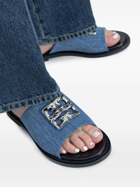 4G Liquid slides Highlights - Indigo blue - Slip-on style - Open back - Round open toe - Flat sole Made in Italy Composition Outer: Cotton 100% Sole: Calf Leather 100% Lining: Calf Leather 100%