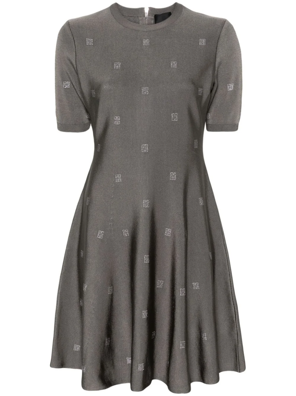 4G-motif flared minidress Highlights - Grey - Knitted construction - Signature 4g motif - Round neck - Rear zip fastening - Short sleeves - Flared - Thigh-length Made in Italy Composition Viscose 78%, Polyester 10%, Polyamide 7%, Metallized Polyester 3%, Elastane 2% SIZE & FIT Model measurements Height 5 ft 11 in(1.8 m) Bust/Chest 30.7 in(78 cm) Hips 35.03 in(89 cm) Waist 24.4 in(62 cm) FittingInformation Designed for a close fit at the chest and waist with a loose fit at the hip Made from a midweight stretch fabric, this piece offers elasticity and flexibility when worn This piece fits true to size – take your usual size