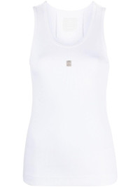 4G-plaque tank top Highlights - White - Stretch-cotton - Fine ribbed - Slim cut - Signature 4g plaque - Scoop neck - Sleeveless - Straight hem Imported Composition Cotton 98%, Elastane 2% SIZE & FIT Model measurements Height 5 ft 9 in(1.76 m) Bust/Chest 33.07 in(84 cm) Hips 34.64 in(88 cm) Waist 25.59 in(65 cm) FittingInformation Designed for a slim fit that sits just away from the body offering a close yet comfortable fit Made from a midweight stretch fabric, this piece offers elasticity and flexibility when worn This piece fits true to size – take your usual size Measurement BUST 27.99 in(71.1 cm) LENGTH 25.98 in(66 cm) WAIST 27.99 in(71.1 cm)