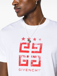 4G-print cotton T-shirt Cut from soft cotton jersey, this relaxed Givenchy T-shirt is presented with a distressed iteration of the signature 4G motif on its front. Highlights - White/red - Cotton - Soft jersey - Tonal stitching - Signature 4g motif - Cracked effect - Crew neck - Short sleeves - Ribbed trim - Straight hem Imported Composition Cotton 100% SIZE & FIT Model measurements Height 6 ft 2 in(1.89 m) Bust/Chest 39.76 in(101 cm) Hips 37.4 in(95 cm) Waist 29.92 in(76 cm) Measurement CHEST 41.73 in(106 cm) LENGTH 28.34 in(72 cm) SLEEVE LENGTH 8.66 in(22 cm) FittingInformation Designed for a slim fit, offering a comfortable fit that sits just away from the body Made from a midweight non-stretch fabric, this piece offers minimal elasticity when worn This piece fits true to size – take your usual size Washing instructions Machine Wash