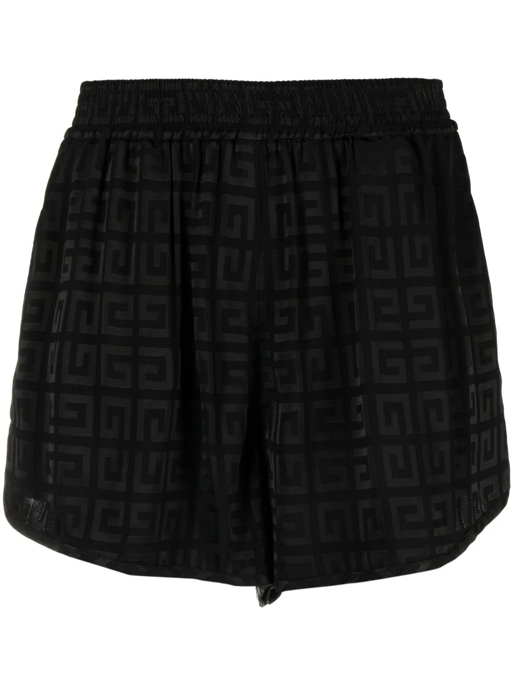 4G-print mini shorts Highlights - Black - All-over logo print - Signature 4g motif - Zip detail - Elasticated waistband - Two side inset pockets - Thigh-length - Straight hem Made in Italy Composition Acetate 70%, Viscose 30% SIZE & FIT Model measurements Height 5 ft 10 in(1.77 m) Bust/Chest 32.28 in(82 cm) Hips 35.03 in(89 cm) Waist 25.19 in(64 cm) FittingInformation Designed for a loose fit, offering comfort and movement when worn The elasticated waist allows for a comfortable fit Made from a midweight non-stretch fabric This piece fits true to size – take your usual size Washing instructions Dry Clean Only