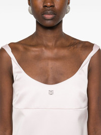 4G satin mini dress Highlights - Light pink - Concealed side hook and zip fastening - Twisted shoulder straps - Ruffle hem Made in Italy Composition Lining: Acetate 76%, Silk 27% Outer: Polyester 100% SIZE & FIT Model measurements Height 5 ft 11 in(1.8 m) Bust/Chest 32.67 in(83 cm) Hips 36.22 in(92 cm) Waist 24.4 in(62 cm) FittingInformation Designed for a slim fit that sits just away from the body offering a close yet comfortable fit Made from a midweight non-stretch fabric