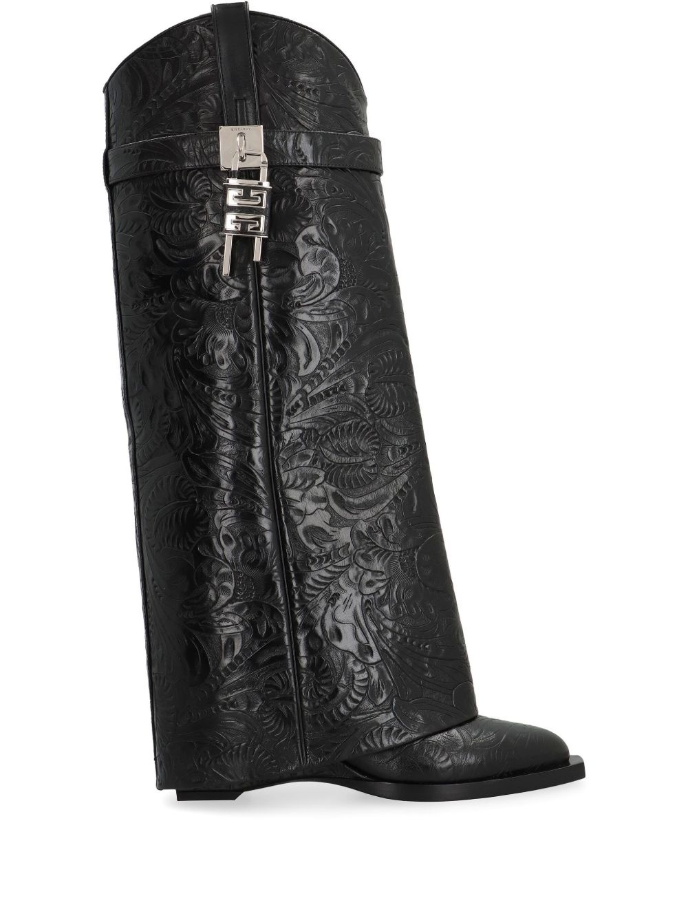 SHARK LOCK COWBOY BOOTS IN LEATHER WITH WESTERN PATTERN