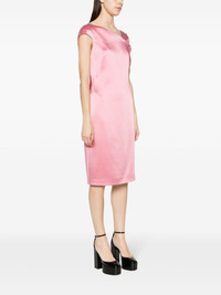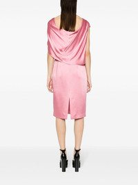 asymmetric midi dress Highlights - Flamingo pink - Satin finish - Asymmetric design - Pleat detailing - Cap sleeves - Dart detailing - Foldover trim at the back - Rear slit - Full lining - Straight hem - Mid-length - Concealed side zip fastening Made in Italy Composition Outer: Viscose 52%, Acetate 48% Lining: Acetate 73%, Silk 27% SIZE & FIT Model measurements Height 5 ft 11 in(1.8 m) Bust/Chest 31.49 in(80 cm) Hips 36.22 in(92 cm) Waist 25.59 in(65 cm) FittingInformation Designed for a slim fit that sits just away from the body offering a close yet comfortable fit Made from a midweight non-stretch fabric This piece fits true to size – take your usual size