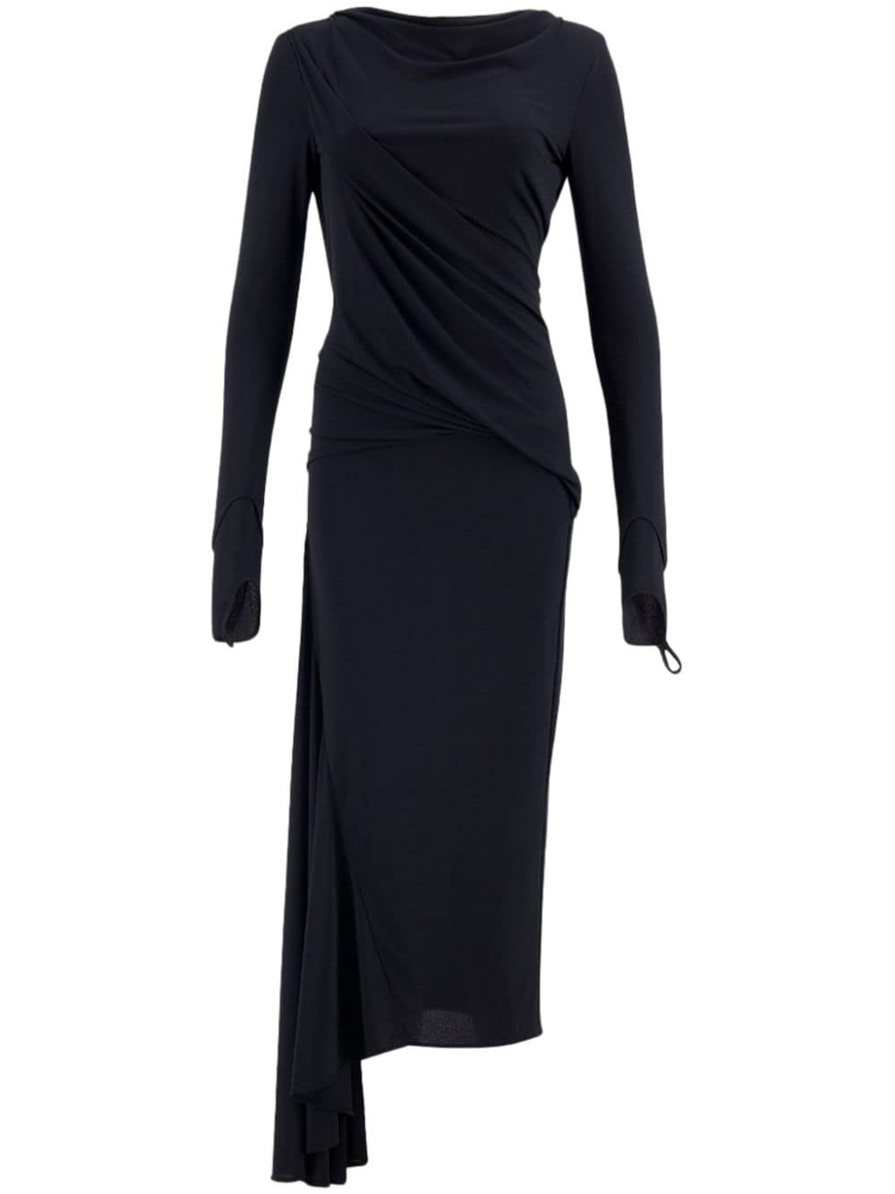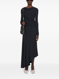 asymmetric midi dress Highlights - Black - Draped design - Round neck - Long sleeves - Open back - Asymmetric hem Made in Italy Composition Viscose 79%, Polyamide 17%, Elastane 4% SIZE & FIT Measurement SLEEVE LENGTH 27 in(68.6 cm) HIPS 32 in(81.3 cm) LENGTH 52.99 in(134.6 cm) WAIST 25.98 in(66 cm) BUST 34.01 in(86.4 cm) Washing instructions Read Manufacturer Guidelines