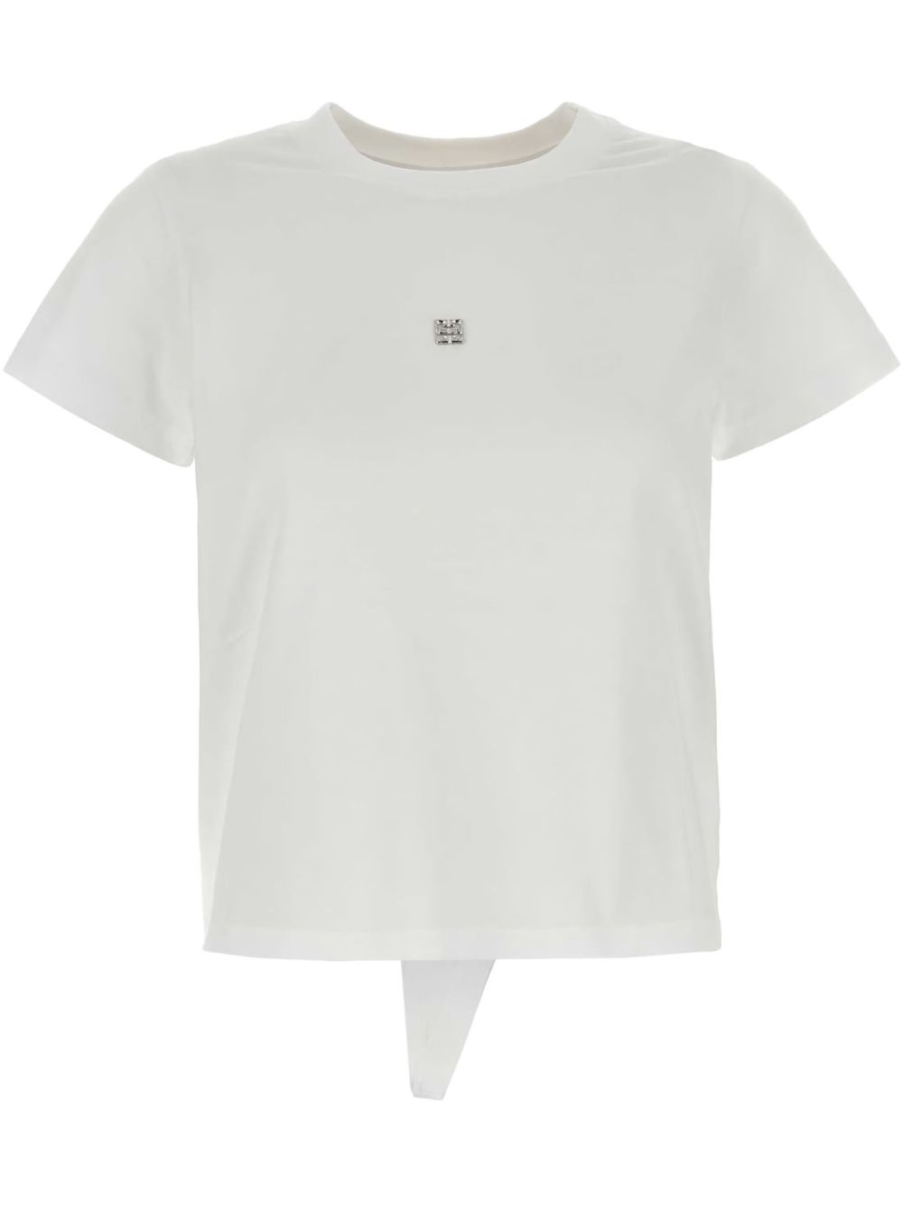 back knot t-shirt Highlights - White - Rear tie fastening - Silver-tone logo plaque - Open back - Crew neck Imported Composition Cotton 100%