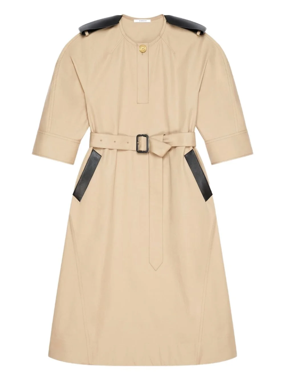 belted cotton dress Highlights - Beige - Belt - Button detailing - Three-quarter sleeves - Crew neck Made in Italy Composition Cotton 100%, Lambskin 100% Washing instructions Read Manufacturer Guidelines