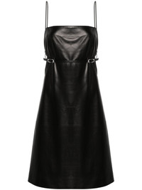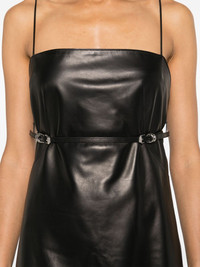 belted leather mini dress Highlights - Black - Lambskin - Nappa leather - Square neck - Spaghetti straps - Belted waist - Full lining - Thigh-length - Straight hem - Concealed side zip fastening Made in Italy Composition Lining: Viscose 55%, Polyester 45% Outer: Lambskin 100% SIZE & FIT Model measurements Height 5 ft 10 in(1.78 m) Bust/Chest 33.07 in(84 cm) Hips 36.61 in(93 cm) Waist 24.8 in(63 cm) FittingInformation Designed for a slim fit that sits just away from the body offering a close yet comfortable fit The belt offers adjustability for fitted preferences Soft leather has a supple and smooth construction offering some flexibility This piece fits true to size – take your usual size
