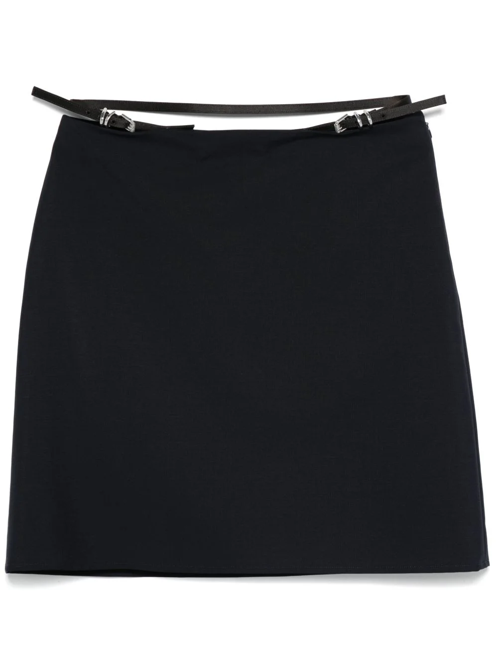 belted mini skirt Highlights - Midnight blue - Wool blend - Interlock weave - Detachable waist belt - Concealed rear zip fastening - A-line - Satin lining - Straight hem - Thigh-length Made in Italy Composition Outer: Wool 73%, Mohair 27% Lining: Acetate 73%, Silk 27% SIZE & FIT Model measurements Height 5 ft 10 in(1.77 m) Bust/Chest 30.7 in(78 cm) Hips 35.03 in(89 cm) Waist 23.62 in(60 cm) FittingInformation This midi-length skirt is intended to be worn low on the hips The belt offers adjustability for fitted preferences Made from a midweight non-stretch fabric Washing instructions Dry Clean Only