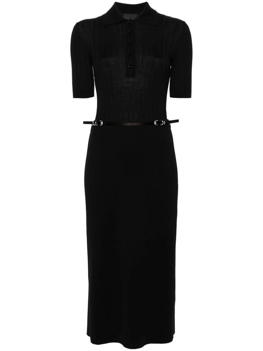 belted wool midi dress Highlights - Black - Wool - Knitted construction - Signature 4g motif - Embroidered logo at the chest - Polo collar - Short front button fastening - Concealed side zip fastening - Short sleeves with ribbed cuffs - Belted waist - A-line skirt - Straight hem - Mid-length Made in Italy Composition Wool 100% SIZE & FIT Measurement SLEEVE LENGTH 10.51 in(26.7 cm) HIPS 34.01 in(86.4 cm) LENGTH 45.98 in(116.8 cm) WAIST 22.99 in(58.4 cm) BUST 25.98 in(66 cm) Washing instructions Dry Clean Only