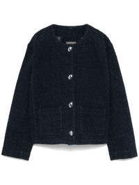 boucle-design jacket Highlights - Indigo blue - Cotton blend - Tweed - Boucle design - Front button fastening - Round neck - Long sleeves - Two patch pockets - Straight hem Made in Italy Composition Cotton 89%, Polyester 7%, Polyamide 4% SIZE & FIT Model measurements Height 5 ft 10 in(1.78 m) Bust/Chest 33.85 in(86 cm) Hips 36.61 in(93 cm) Waist 26.77 in(68 cm) FittingInformation Designed to be unstructured, offering a loose fit throughout Constructed from stretch denim, this piece offers a stretch fit with durability