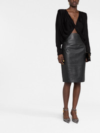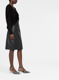 buckle-detail leather pencil skirt Highlights - Black - Calf leather - Smooth grain - High-waisted - Concealed rear zip fastening - Rear buckle fastening - Straight hem - Below-knee length Made in Italy Composition Outer: Calf Leather 100% Lining: Viscose 55%, Polyester 45% SIZE & FIT Model measurements Height 5 ft 10 in(1.77 m) Bust/Chest 32.28 in(82 cm) Hips 35.03 in(89 cm) Waist 25.19 in(64 cm) FittingInformation This midi-length skirt is intended to be worn high on the waist Soft leather has a supple and smooth construction offering some flexibility This piece fits true to size – take your usual size Washing instructions Do Not Wash/Do Not Dry Clean