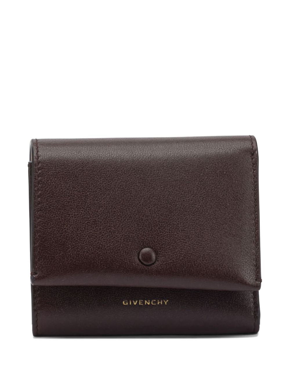buttoned leather wallet Highlights - Brown - Leather - Button fastening - Card slots - Bill pocket - Logo lettering Made in Italy Composition Outer: Calf Leather 100% Lining: Lambskin 100% SIZE & FIT Measurement DEPTH 1.18 in(3 cm) LENGTH 3.5 in(8.9 cm) WIDTH 3.89 in(9.9 cm)