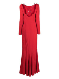 chain-link detail dress poppy red logo plaque boat neck open back chain-link detailing long sleeves pleated skirt Made in France Composition Viscose 64%, Acetate 33%, Spandex/Elastane 3% Washing instructions Dry Clean Only