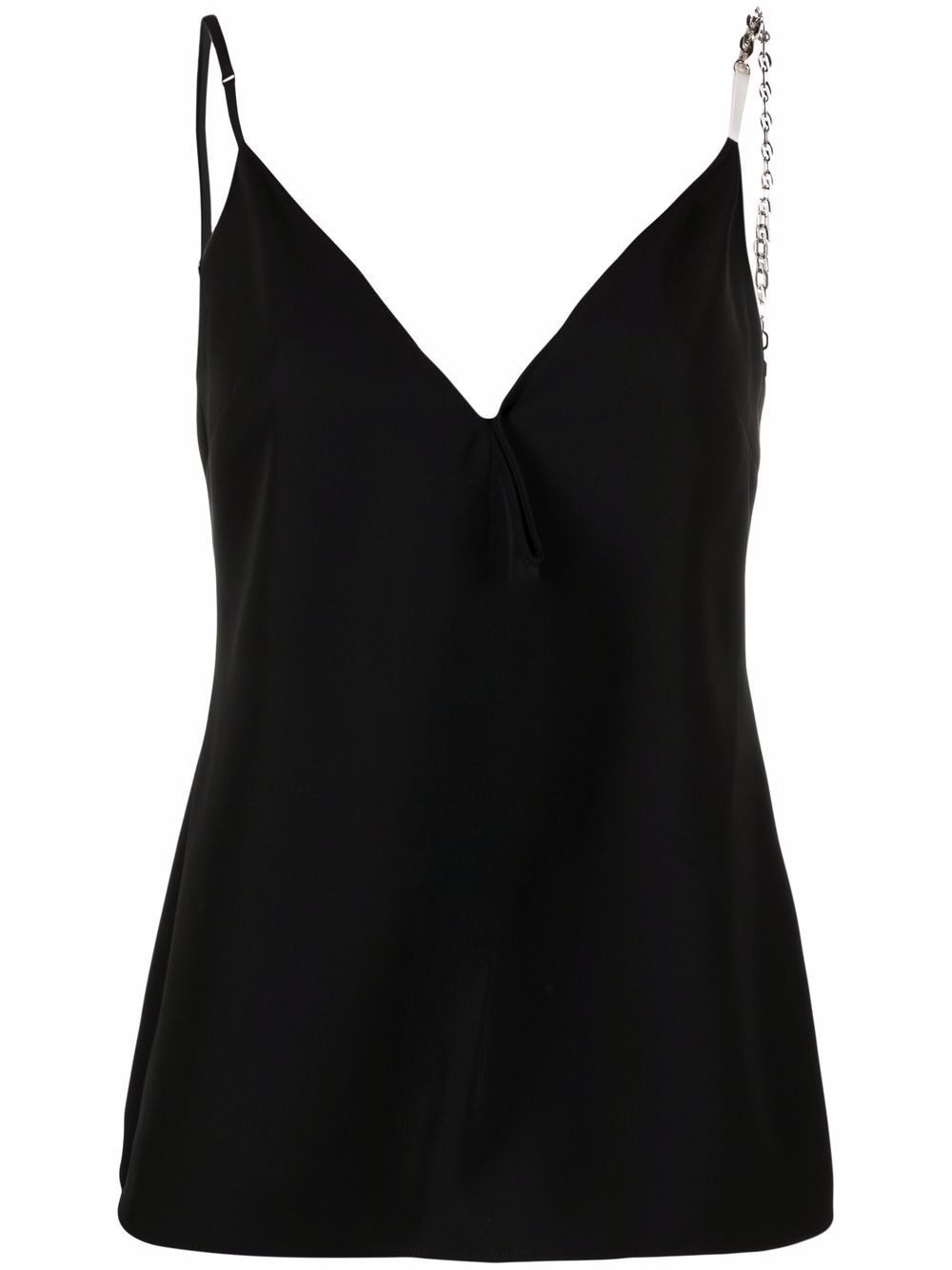 chain-strap tank top Elegance is easy when Givenchy is around, and this tank top is the proving point. The otherwise pared-back design is contrasted by two chain-detail straps for that signature edge that is expected. Made in Italy Composition Polyester 100% SIZE & FIT Model measurements Height 5 ft 10 in(1.78 m) Bust/Chest 31.49 in(80 cm) Hips 37 in(94 cm) Waist 23.62 in(60 cm) FittingInformation This piece fits true to size. We recommend you get your regular size Cut for a loose fit Made with a mid-weight fabric Washing instructions Dry Clean Only
