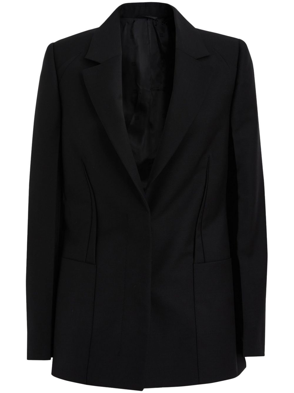 corset-style blazer Highlights - Black - Wool-mohair blend - Corset style - Concealed front button fastening - Notched collar - Long sleeves - Two front welt pockets - Logo-print lining Made in Italy Composition Fabric 100%