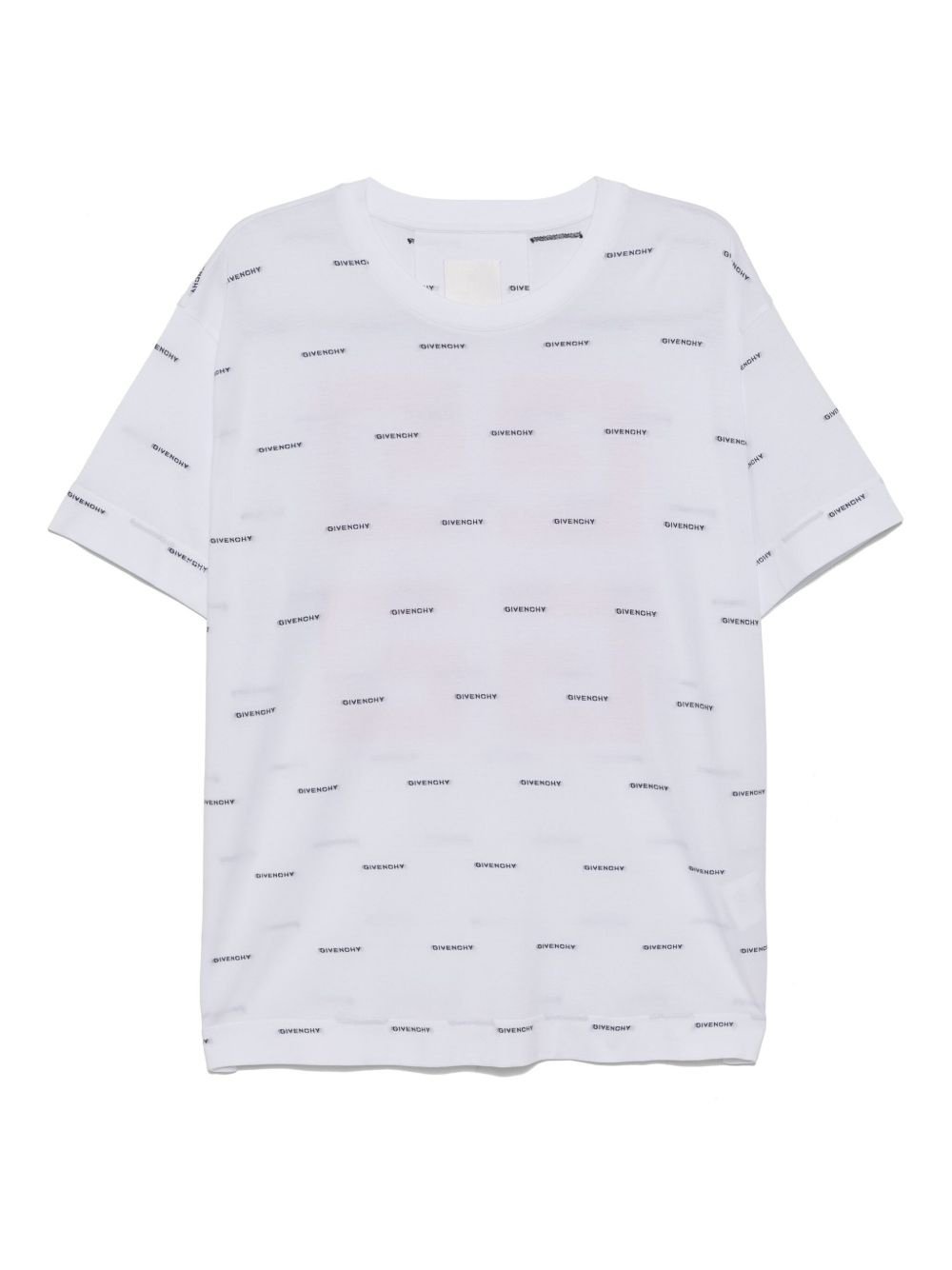 cotton T-shirt Highlights - White - Round neck - All-over logo print Imported Composition Cotton 100% SIZE & FIT FittingInformation Designed to be unstructured, offering a loose fit throughout Made from a midweight non-stretch fabric, this piece offers minimal elasticity when worn Washing instructions Machine Wash