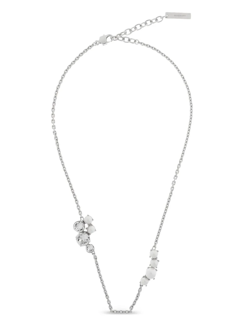 CRYSTAL PEARL SHORT NECKLACE IN METAL, CRYSTALS AND PEARLS