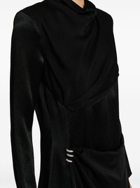 crystal-embellished satin midi dress Combining modern style with a timeless French sophistication, this Givenchy dress boasts draped detailing with crystal-embellished fastening. The design encapsulates how the brand combines past and present. Highlights - Black - Satin weave - A-line - Draped detailing - Crystal embellishment - High neck - Concealed rear zip fastening - Long sleeves - Asymmetric hem - Mid-length Made in Italy Composition Viscose 100% SIZE & FIT Model measurements Height 5 ft 10 in(1.77 m) Bust/Chest 31.49 in(80 cm) Hips 35.43 in(90 cm) Waist 25.19 in(64 cm) FittingInformation Designed for a slim fit that sits just away from the body offering a close yet comfortable fit The internal shoulder pads offer a structured shape Made from a midweight non-stretch fabric This piece fits true to size – take your usual size