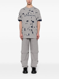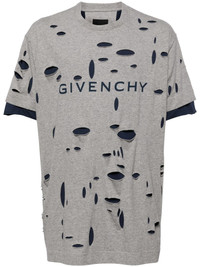 distressed layered T-shirt Givenchy created this logo-print cotton T-shirt with an irreverent concept in mind. The all-over distressed effect reveals a layered design in a contrasting navy blue hue. Highlights - Heather grey/navy blue - Cotton - Layered design - Distressed effect - Melange effect - Crew neck - Logo print to the front - Short sleeves - Straight hem Imported Composition Cotton 100% Washing instructions Machine Wash