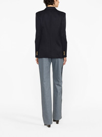 double-breasted peak-lapel blazer A distinctive take on classic tailoring, Givenchy’s blazer is traced with logo-engraved gold-tone buttons. It’s crafted from a navy wool-mohair blend to a double-breasted silhouette. Highlights - Navy blue - Wool-mohair blend - Embossed gold-tone buttons - Peak lapels - Double-breasted button fastening - Shoulder pads - Long sleeves - Buttoned cuffs - Chest welt pocket - Two front flap pockets - Full lining - Straight hem Made in Italy Composition Outer: Wool 77%, Mohair 23% Lining: Cupro 100% SIZE & FIT Model measurements Height 5 ft 10 in(1.78 m) Bust/Chest 30.7 in(78 cm) Hips 34.64 in(88 cm) Waist 23.22 in(59 cm)