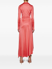 draped midi dress Highlights - Coral pink - Side slit - Plunging v-neck - Ruched detailing - Asymmetric hem Made in Italy Composition Viscose 100%