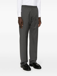 drawstring straight trousers Highlights - Medium grey - Wool blend - Pressed crease - Elasticated waistband with internal drawstring - Straight leg - Two side slit pockets - Two rear welt pockets - Straight hem - Long length Made in Italy Composition Outer: Wool 91%, Polyamide 9% Lining: Cotton 100% SIZE & FIT Model measurements Height 6 ft 2 in(1.87 m) Bust/Chest 36.41 in(92.5 cm) Hips 37 in(94 cm) Waist 29.52 in(75 cm) FittingInformation Designed for a straight-leg, allowing for an unrestricted and comfortable fit over the leg The unfinished hems allow for the length to be altered Made from a midweight non-stretch fabric This piece fits true to size – take your usual size