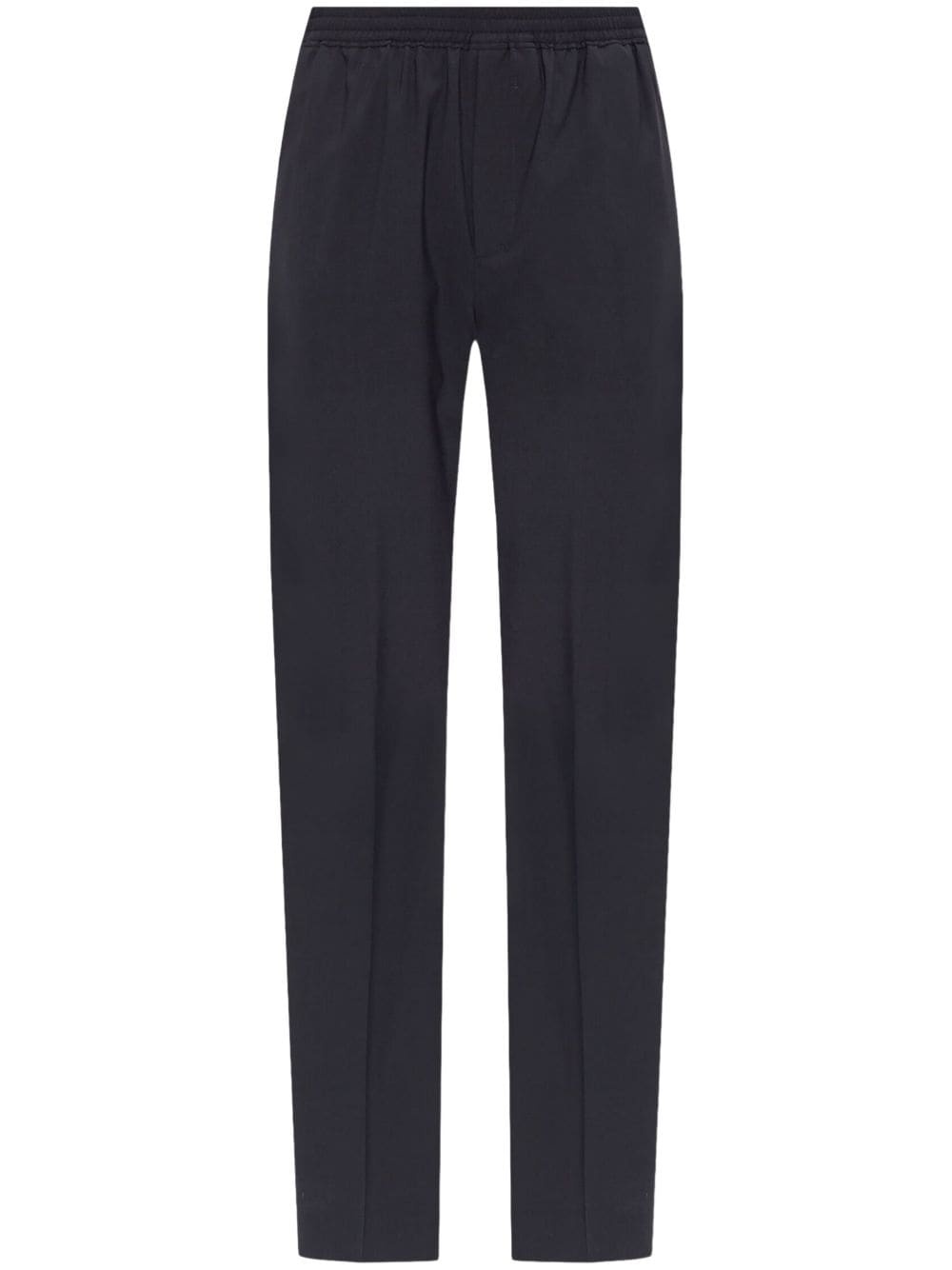 elasticated-waist straight-leg trousers Highlights - Blue - Wool blend - Elasticated waistband - Pressed crease - Two side inset pockets - Two rear welt pockets - Straight leg Made in Italy Composition Wool 58%, Polyamide 38%, Elastane 4% Washing instructions Read Manufacturer Guidelines