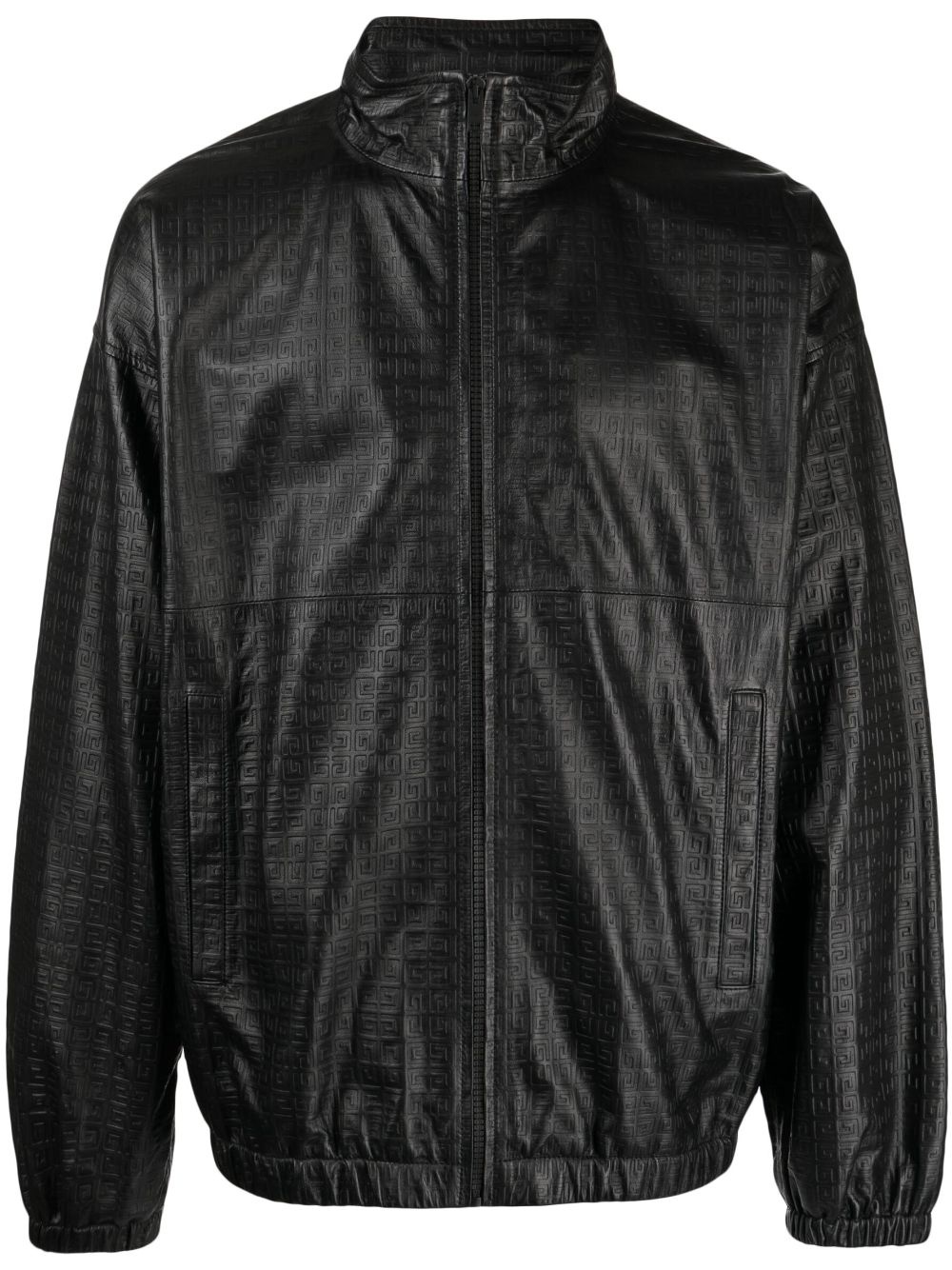 embossed-4G leather jacket Highlights - Black - Lamb skin - Embossed finish - Signature 4g motif - Elasticated cuffs - Elasticated waistband - Stand-up collar - Front zip fastening - Long sleeves - Two front welt pockets Imported Composition Lining: Polyester 100% Body: Lamb Skin 100% SIZE & FIT Model measurements Height 6 ft 2 in(1.87 m) Bust/Chest 36.22 in(92 cm) Hips 37.79 in(96 cm) Waist 28.34 in(72 cm) FittingInformation Designed to be unstructured, offering a loose fit throughout The elasticated hem allows for movement and a comfortable fit Firm leather offering little flexibility to maintain its durability and sturdiness This piece fits true to size – take your usual size
