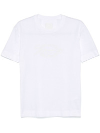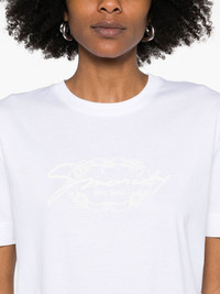 embroidered T-shirt Highlights - White - Crew neck - Short sleeves - Straight hem Made in Italy Composition Cotton 100% SIZE & FIT Model measurements Height 5 ft 11 in(1.8 m) Bust/Chest 32.67 in(83 cm) Hips 35.82 in(91 cm) Waist 25.98 in(66 cm) FittingInformation Designed for a relaxed fit, this piece allows for comfort and movement when worn Made from a midweight non-stretch fabric, this piece offers minimal elasticity when worn